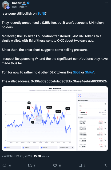 One striking aspect of the Interface Fee controversy is that it addresses several concerns and challenges faced by Uniswap Labs, the operating entity, without offering any tangible advantages to UNI token holders. The introduction of this fee streamlines revenue generation for the entity and covers operational costs. However, it leaves tokenholders on the sidelines, with no direct economic incentives or rewards for their participation.