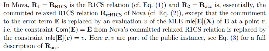 Nova is one of the pioneering folding schemes that introduced the concept of combining instance-witness pairs. It uses homomorphic encryption techniques to commit to vectors, which then undergo folding to produce a combined proof. While Nova has been influential in advancing folding schemes, it has notable limitations: