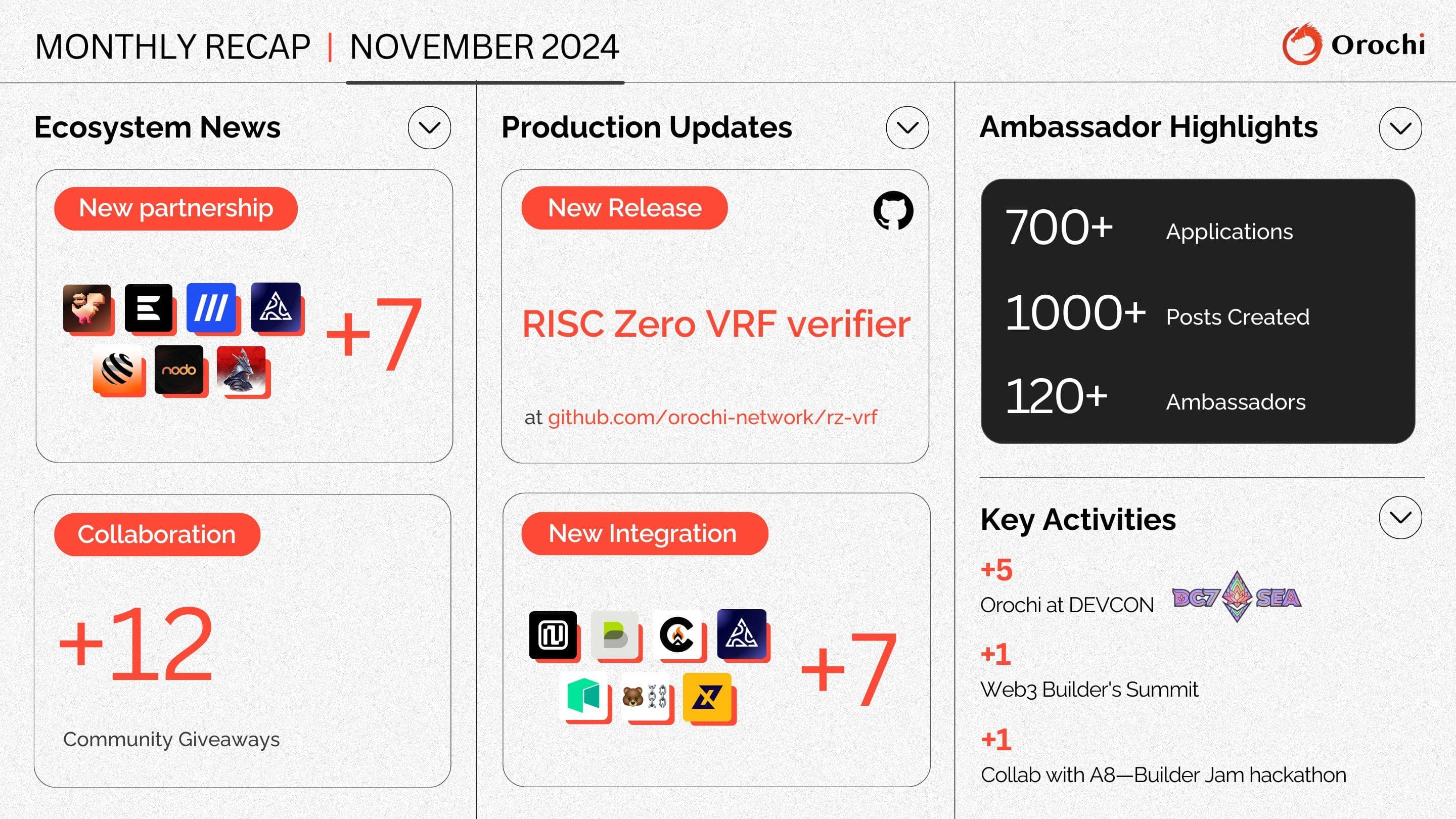 We’re incredibly grateful to our community and partners for their active participation and support, which continue to drive Orochi forward.